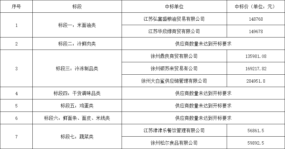 我校对徐州生物工程职业技术学院食堂大宗食品原料采购项目进行开标,现发布中标公告。